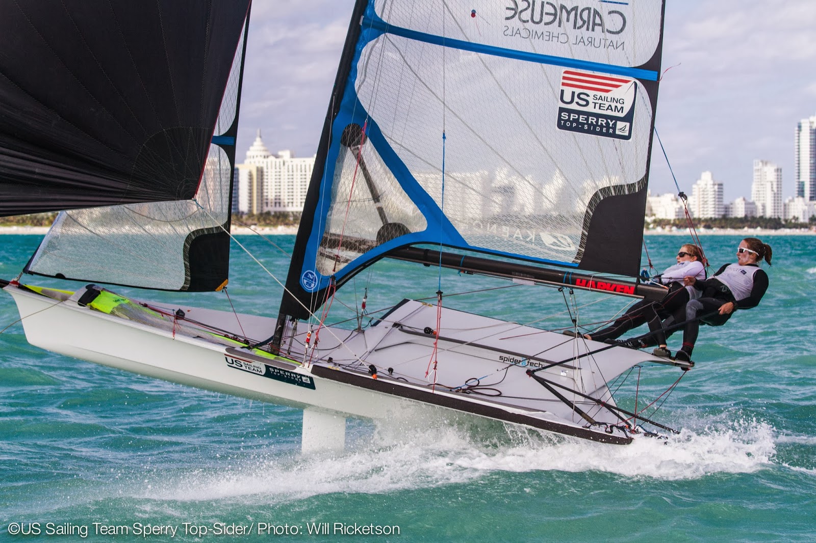 This past week, Dec 16-20, I sailed the US Sailing Team Sperry Top-Sider’s December training camp at Miami Yacht Club with Anna Tunnicliffe. Paris was taking her final exams in San Diego and Anna’s crew Molly was traveling, so Anna and I teamed up for extra hours on the water! I am very fortunate to have had the opportunity to sail with Anna. She has been a role model for me since I first started racing 29ers in 2008, the year she won her Gold medal in the Laser Radial at the Beijing Olympics.